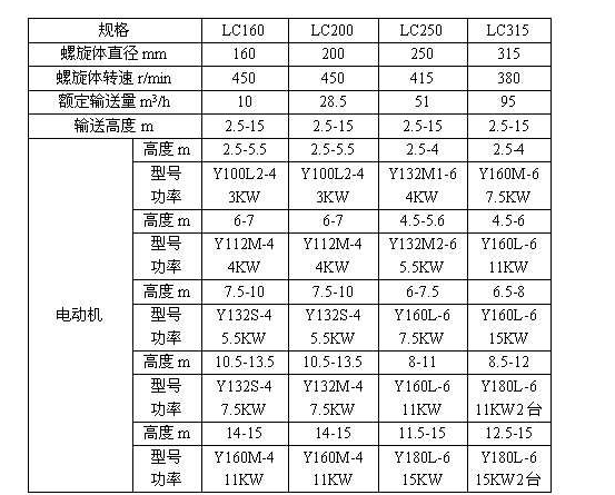 六、LC型垂直螺旋輸送機規(guī)格及技術(shù)參數(shù):
